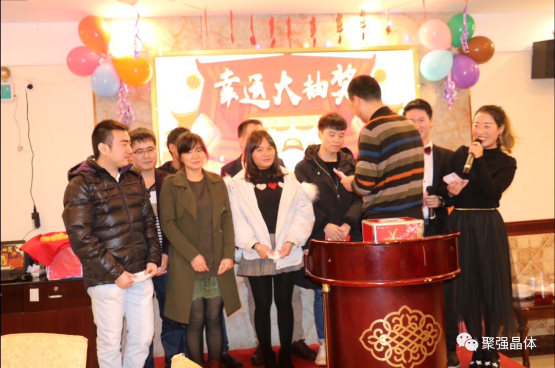聚强晶体2018新春感恩年会在热情、温馨、欢乐的气氛中圆满结束,大家在欢声笑语中度过了一个难忘的夜晚。衷心的祝福聚强晶体的明天会更好,2018年的事业一定会更加辉煌,让我们携起手共同创造出更多属于我们聚强的奇迹!